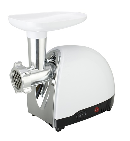 เครื่องบดเนื้อไฟฟ้ามีการออกแบบให้มีด้ามจับตัวใหญ่กล่องพลาสติกใส่อาหารและไส้กรอก